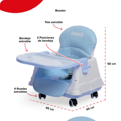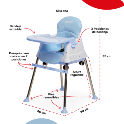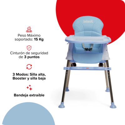 - Uso 3 en 1: Silla alta, booster para silla de adulto y silla baja.