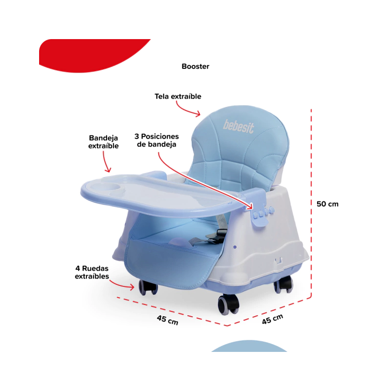 La Silla de Comer Booster Bebesit combina tres funciones en un solo producto, adaptándose al crecimiento del bebé. Con diseño moderno, materiales seguros y detalles prácticos, es ideal para usar como silla alta, booster o silla baja en cada etapa.
