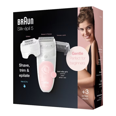 - En seco y mojado (Wet & Dry): 100 % resistente al agua: podrás depilarte en la bañera o en la ducha gracias a su mango antideslizante. Usándola a menudo con agua, la depilación se vuelve prácticamente indolora.