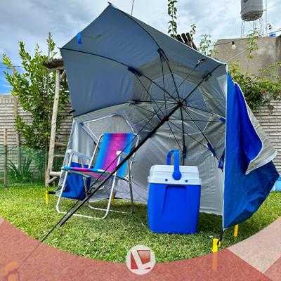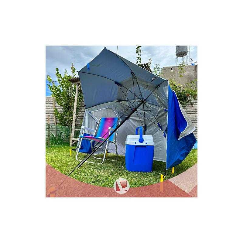 La Sombrilla Carpa Playera es ideal para playa, picnic, pesca o actividades al aire libre. Tiene capacidad para dos personas, práctica y versátil, puede utilizarse como sombrilla tradicional o como carpa. Confeccionada en material resistente y duradero, garantizando protección contra el viento y el sol. Además, incluye un bolso para guardar y transportar.