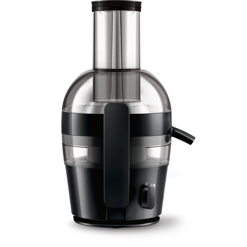 El tubo extragrande de 75 mm te permite exprimir incluso frutas y verduras grandes como manzanas, zanahorias y remolachas, sin tener que cortarlas primero.