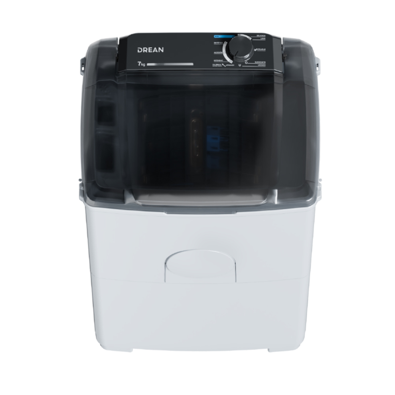 Lavarropas semiautomático de carga superior. Color blanco. Capacidad de lavado de 7 Kg. Posee 9 programas de lavado. Sistema de lavado europeo. Comando superior. Cuenta con tapa transparente. Tambor de acero inoxidable. Dispenser de detergente y suavizante. Sin centrifugado.