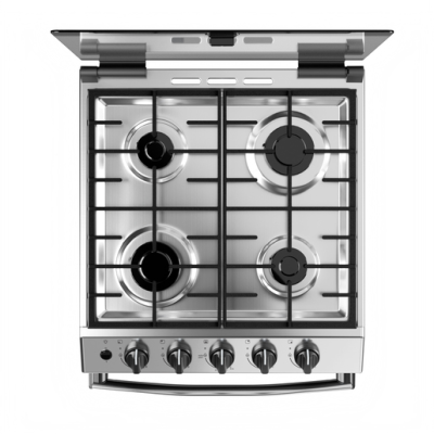 Cocina multigas de 56 cm. Color inoxidable. Capelo de vidrio. 4 hornallas multitamaños. Parrillas superiores de fundición. Parrillas en horno cromadas. Cubierta sellada de acero inoxidable. Encendido electrónico integrado. Sistema de limpieza Easy Clean Pro. Cajón asador deslizable. Luz en horno.