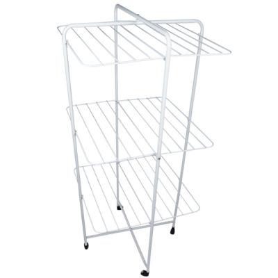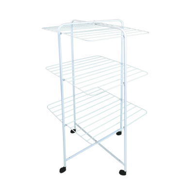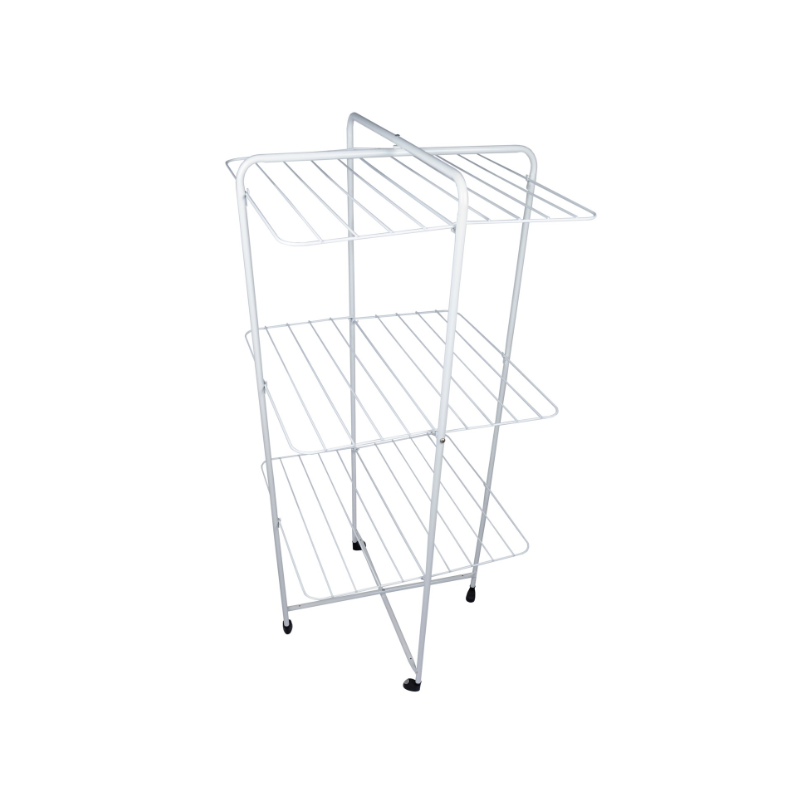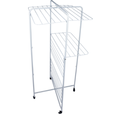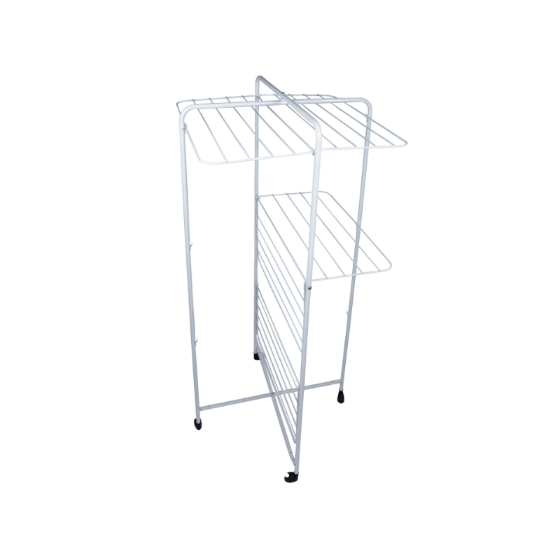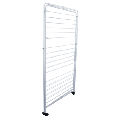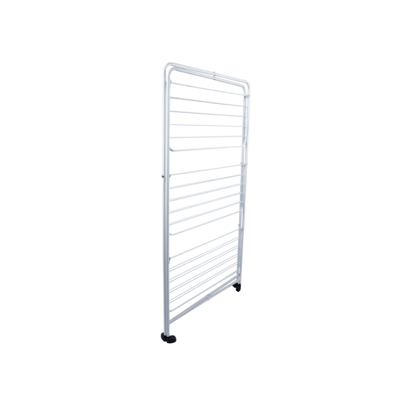 Diseñado para optimizar el espacio, este tendedero plegable y con ruedas facilita el secado de ropa en interiores o exteriores. Su estructura metálica es resistente y liviana, ideal para mover y guardar con facilidad.