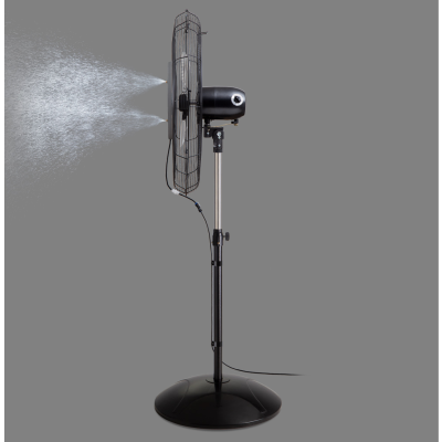 Este innovador Sistema expulsa gotas micronizadas formando una tenue niebla que humedece el ambiente reduciendo la sensación térmica de 8 a 10°C. Estas gotas micronizadas son esparcidas por el flujo de aire del ventilador, generando una sensación de frescura y alcanzando una cobertura aproximada de 30 m2.