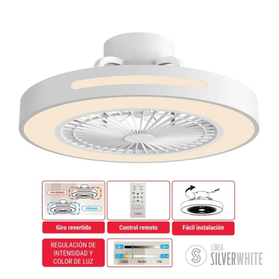 La línea Silverwhite ofrece un diseño compacto y moderno, con 5 palas innovadoras que garantizan un mayor caudal de aire sin turbulencias. Es ideal para áreas de trabajo o descanso, gracias a su bajo nivel de ruido y su diseño slim.
