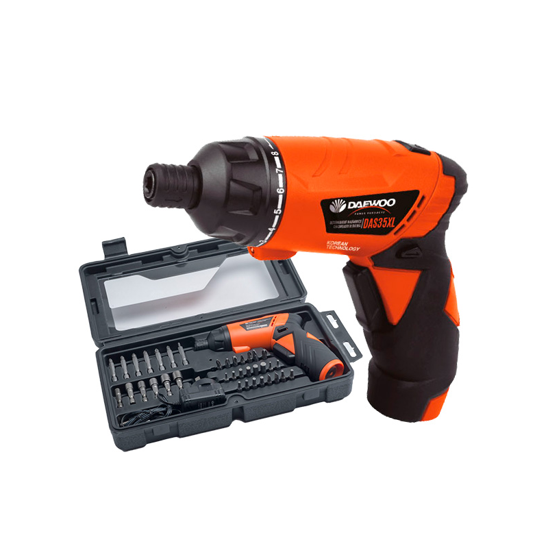 El destornillador inalámbrico Daewoo DAS35XL cuenta con batería de litio. Ahora el trabajo será más fácil porque no hay necesidad de enchufes. Podras moverte mejor de un lado a otro, y terminar los trabajos en menos tiempo. Además, la misma batería se puede usar para distintas herramientas.