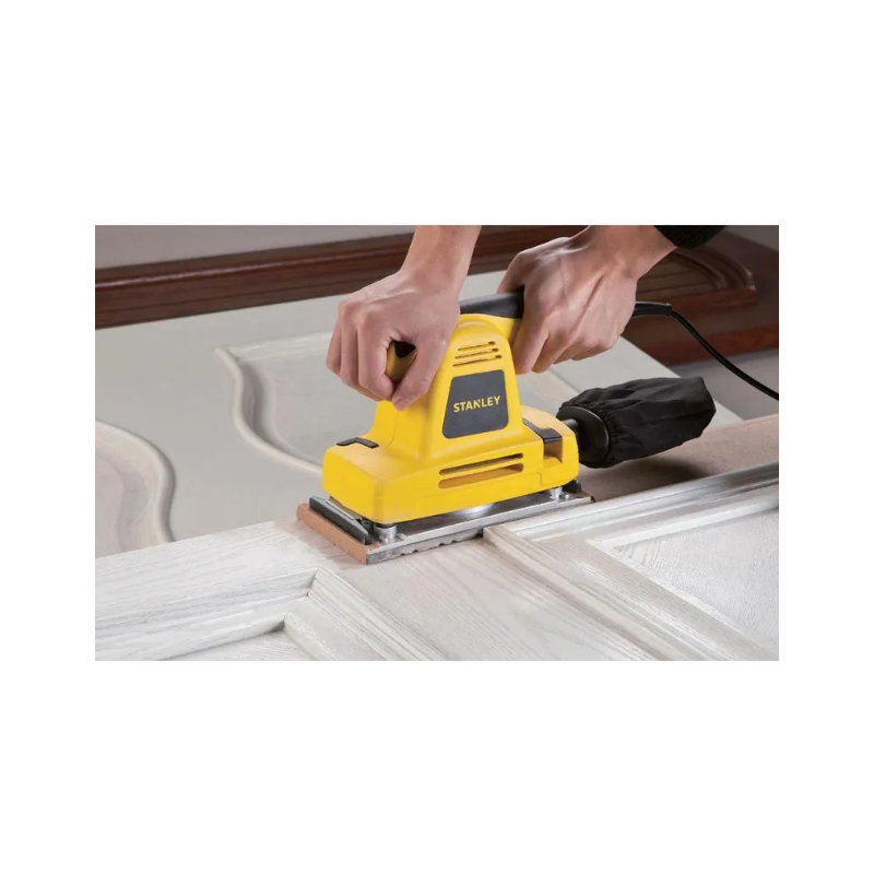 Lijadora orbital, posee empuñadura recubierta de goma para mejor agarre, botón de bloqueo para uso continuo, control de velocidad variable para acabados profesionales. Sistema de fijación de lija para cambio rápido de hoja y bolsa recolectora de polvo. Potente motor de 310W. Incluye punzón para papel, Adaptador para aspiradora y bolsa colectora de polvo.