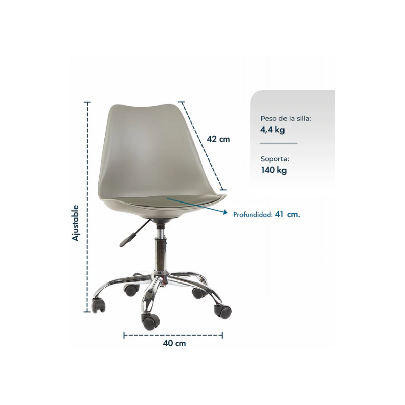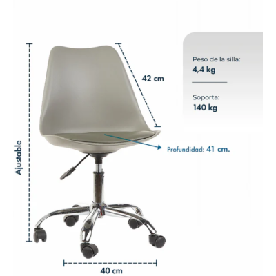 - Base giratoria cromada con 5 ruedas para mayor movilidad y estabilidad