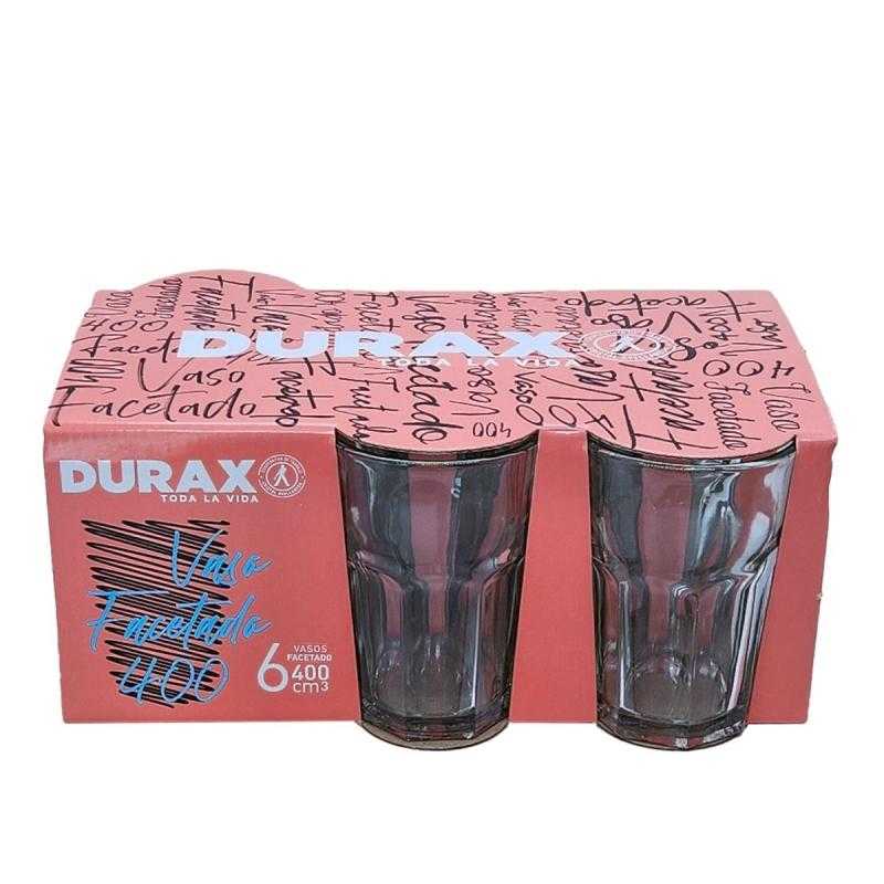 Clásicos, resistentes y versátiles. Este set de vasos facetados Durax es ideal para el uso diario en el hogar, la oficina o en gastronomía. Cada vaso tiene una capacidad de 400 cc, el tamaño justo para disfrutar de todo tipo de bebidas: agua, jugos, gaseosas, tragos o infusiones frías.