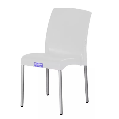 Silla ligera con patas metálicas. Con su diseño estilizado y elegante proporciona un descanso confortable y seguro.