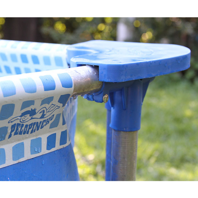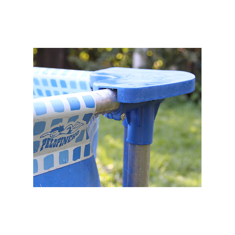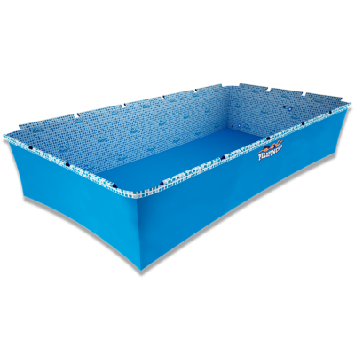 Pileta de lona, estructura metálica inoxidable y esquineros de PVC reforzados.