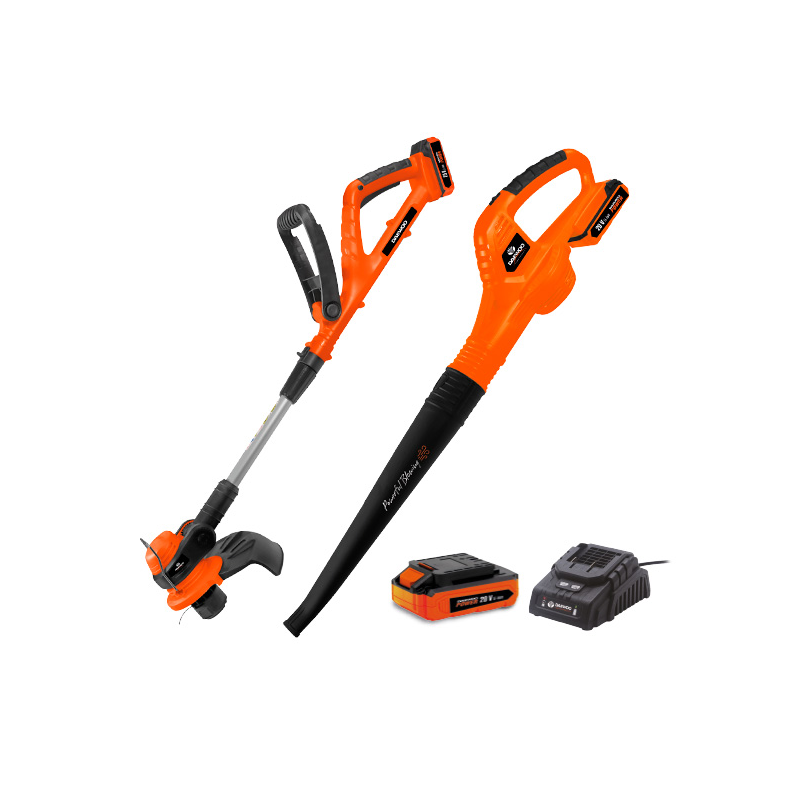 Este combo es ideal para el mantenimiento de tu jardín, además de las excelentes prestaciones de nuestros equipos, esta presentación nos brinda la posibilidad de ahorrar ya que la batería el cargador pueden ser usados tanto en la bordeadora como en el soplador, siendo que forman parte del sistema Litio Universal Daewoo, sin la necesidad de adquirir otro juego de batería y cargador.