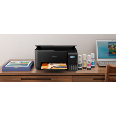 La Impresora multifuncional 3 en 1 Epson EcoTank L3250 ofrece a las familias, estudiantes y profesionales un costo de impresión ultra bajo, que te permite imprimir hasta 4.500 páginas en negro o 7.500 páginas a color5 con cada juego de botellas de repuesto.