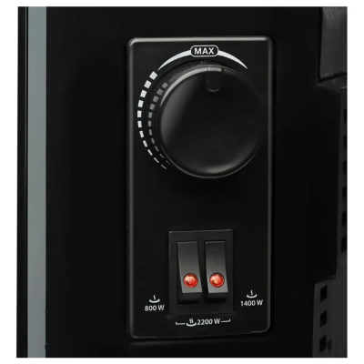 Tres niveles de intensidad de calor: 800 W, 1.400 W y 2.200 W.