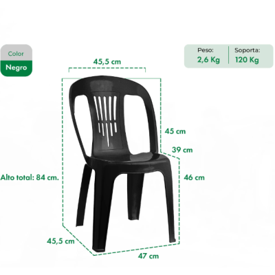 Fabricada con **plástico virgen de alta calidad**, la silla Antonella asegura una **resistencia superior y una durabilidad extrema**. Está diseñada para soportar un uso intensivo y un peso máximo de hasta **140 kg**, brindando la máxima seguridad y estabilidad para vos y tus invitados. Su construcción robusta no compromete la comodidad, ofreciendo un asiento confortable para largas reuniones o momentos de relax.