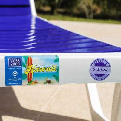 Reposera Hawaii con parrilla plástica de polipropileno. El respaldo permite cinco posiciones de regulación, y con la posibilidad de reclinar toda la espalda hasta una posición de 85 grados. Cómodas y super resistentes. Contiene ruedas para su fácil traslado