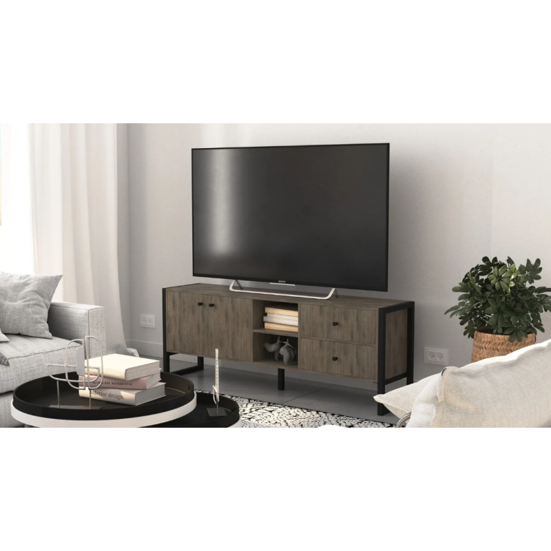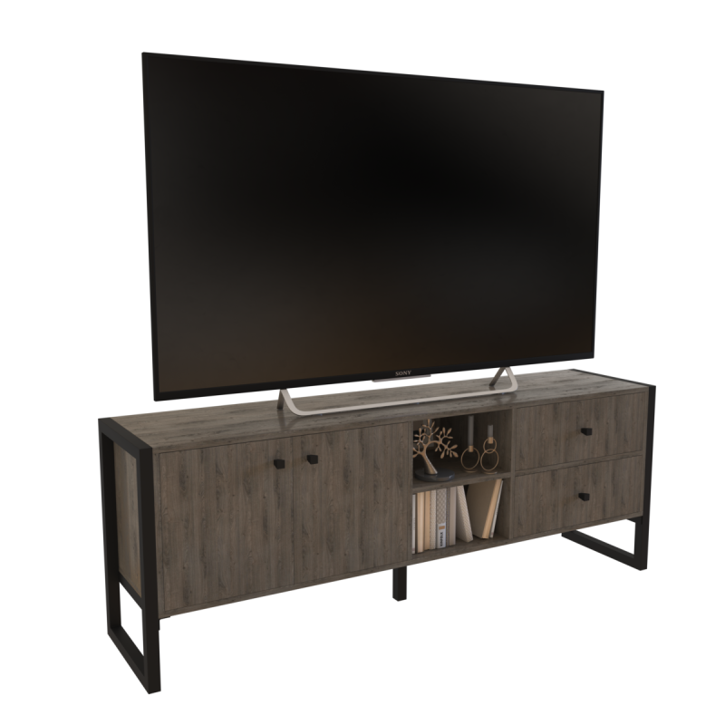 Nuestro rack steel para tv de Delos es el complemento perfecto para tu sala de estar. Con una estructura de hierro mate de 2,2cm y cuadro de 3x3cm, este rack es resistente y soporta tu TV de hasta 65″ y tus dispositivos de entretenimiento favoritos.