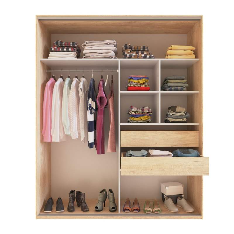 Si estás buscando un mueble funcional y duradero, nuestro Ropero Reflex de 2 puertas corredizas y 2 cajones es la elección perfecta. Fabricado con melamina de alta gama de 15mm MDP, cuenta con correderas telescópicas, guía superior e inferior, tiradores de puertas y perchero en aluminio anodizado. Además, sus ruedas inferiores con amortiguación proporcionan un movimiento suave y sin ruido, garantizando un uso prolongado sin desgaste.