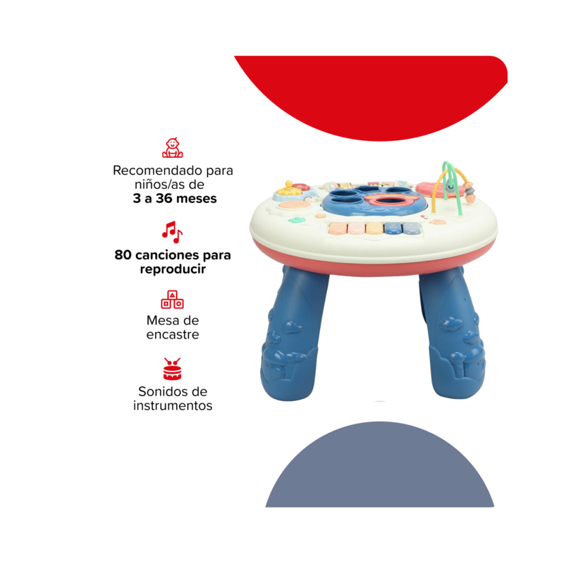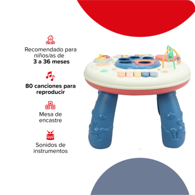 Aprendizaje y diversión en el día a día de tu bebé con nuestra Mesa Didáctica. Diseñada especialmente para estimular los sentidos y fomentar el desarrollo temprano, esta mesa es el compañero perfecto para la exploración y el juego.