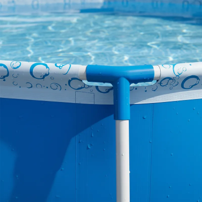 Fabricada con lona durable, esta pileta resalta por su robustez y resistencia al uso frecuente. Su altura de 62 cm la hace accesible para niños y adultos, ofreciendo una experiencia de baño cómoda y segura. La válvula de desagüe incluida facilita el mantenimiento y el vaciado, asegurando que su uso siempre sea práctico y conveniente.