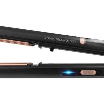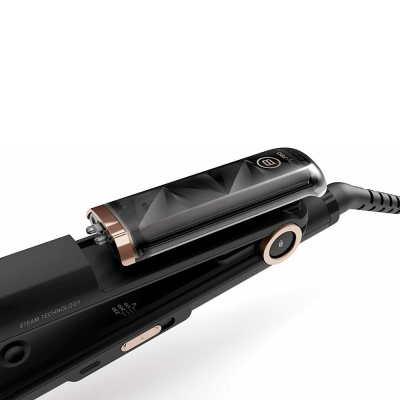 Con tecnología a vapor: La acción del vapor prepara al cabello para el paso de las placas, favorece el estiramiento de las fibras capilares, las protege del choque térmico y preserva la hidratación para evitar el volumen, el efecto frizz-crespo y ondulamiento.