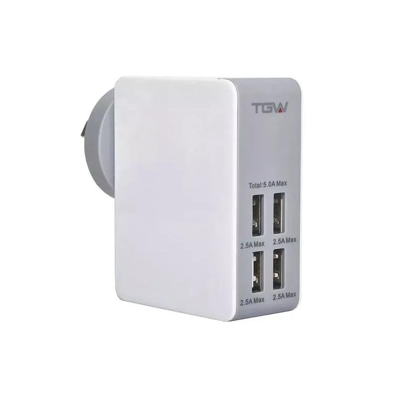 Cada una de los cuatro puertos USB entrega hasta 2500 mAh de potencia por lo que es ideal para los dispositivos que requieren carga rápida (el total de la potencia es de hasta 5000 mAh)