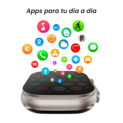Descarga gratuita de más de 500 fondos de pantalla, efectos de acercamiento y alejamiento de desplazamiento de lista hacia arriba y hacia abajo, conexión con un clic, juegos somatosensoriales, GPS deportivo, descargas de juegos, administración de fondo, función cambio de fondo de la aplicación, video de trayectoria deportiva en la aplicación, intercambio de salud familiar y posicionamiento de información de salud, alarma de emergencia SOS, álbumes de fondos de pantalla, videos de fondos de pantalla, llamada Bluetooth, asistente de voz, tono de llamada independiente, reloj independiente, pantalla siempre encendida, luz de noche, fisiología femenina, temperatura corporal, frecuencia cardíaca y electrocardiograma, presión arterial, oxigenación en sangre, monitoreo de sueño, conteo de pasos, cámara Bluetooth, música Bluetooth, amigos, código de pago, calculadora, agenda telefónica, clima, cronómetro, temporizador, alarma, PIN de bloqueo, linterna, masaje. Resistencia al agua IP68 lo que permite sumergirlo 1,5 mts. hasta 30 min. Posee base de carga magnética. Manual en español, Soporta pantalla dividida para utilizar 2 programas al mismo tiempo. Doble caja sellada con exclusiva presentación. Posee traba de seguridad la malla. Incluye Carcaza Cobertora que protege la Pantalla y nuevas funciones. (CHATGPT y además se pueden diseñar fondos de pantalla con Inteligencia Artificial)