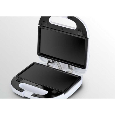 La sandwichera Peabody PE-SW6141 tiene un clásico diseño en color blanco con indicador luminoso de encendido y apagado en la parte superior. Su potencia es de 700 watts y cuenta, además, con superficie antiadherente y manija fría al tacto.