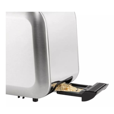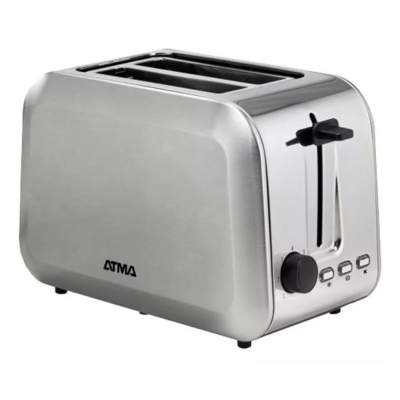 La tostadora ATMA TO8020IP posee un cuerpo de acero inoxidable con capacidad para 2 rebanadas de pan. Su diseño ofrece una bandeja recolectora de migas para facilitar su limpieza, una base antideslizante para que se mantenga en su lugar y un práctico enrolla cable.