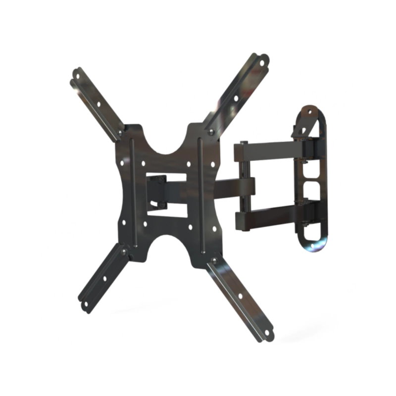 Su diseño permite inclinación de –20° a +20° y giro de hasta 180°, ofreciendo gran versatilidad para orientar la pantalla según la necesidad. Además, es extensible, regulando la distancia de la pared entre 10 y 25 cm.
