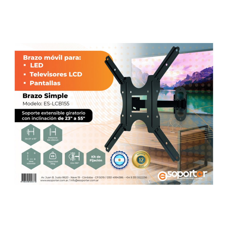 El soporte tiene extensión en un solo tramo y permite que el TV pueda tener inclinación y giro sobre su mismo eje.